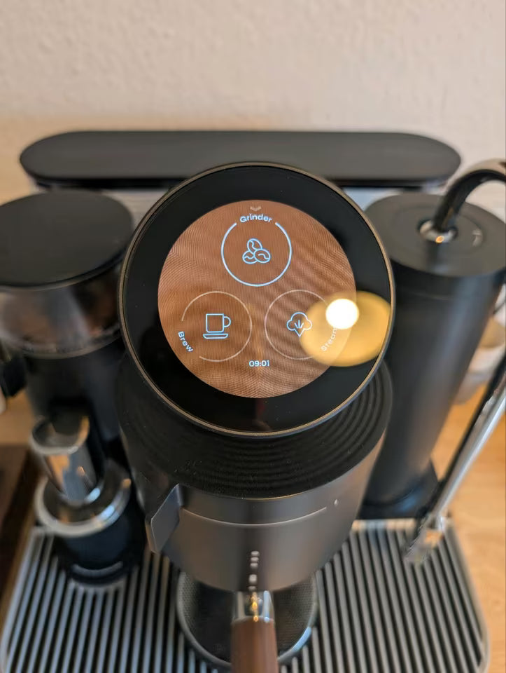 - Modo Auto (Smart Auto-Mode): desde moler hasta texturizar la leche, solo ajustas peso o temperatura desde la pantalla táctil intuitiva