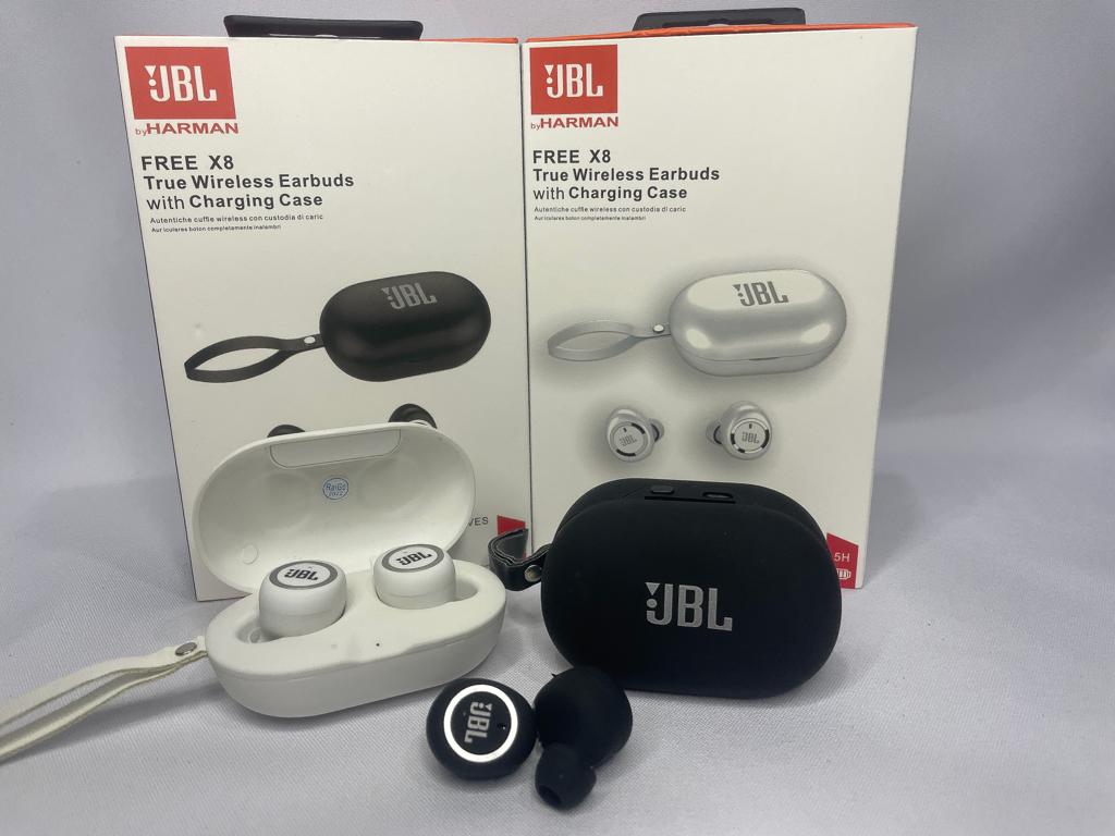 Verdadero estéreo inalámbrico (TWS), diseño real sin cables. canal izquierdo y derecho Individual, tanto los auriculares izquierdo como derecho están habilitados con Bluetooth. podría usarse por separado o usarse como un par. estuche de carga magnético. modelo del producto: JBL FREE X8 color del producto: NEGRO-BLANCO tipo de producto: auriculares deportivos inalámbricos TWS versión Bluetooth: V5.0 EDR capacidad de la batería de los auriculares: 50mAh/Individual con la junta de protección capacidad de la batería del caso: 350mAh con la junta de protección tiempo de trabajo: alrededor de 4-5 horas tiempo de espera: 22 horas
